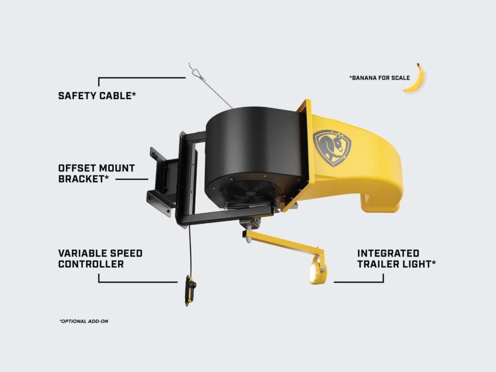 El diseño del Velocity Trailer Fan responde a las exigencias de ambientes industriales. Fabricado con acero estructural de alta resistencia y respaldado por una garantía de 4 años, el equipo refleja un compromiso claro con la durabilidad y la confiabilidad. A esto se suma un controlador de velocidad variable que permite ajustar el flujo de aire según las necesidades específicas de cada operación, integrando potencia con facilidad de uso y control inteligente.
